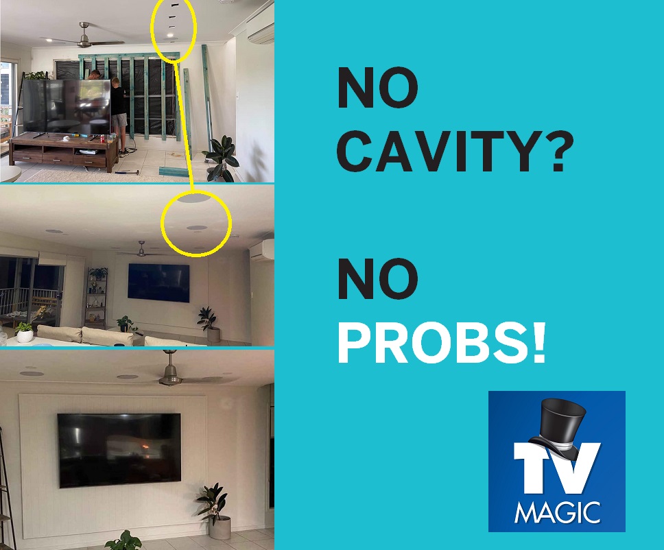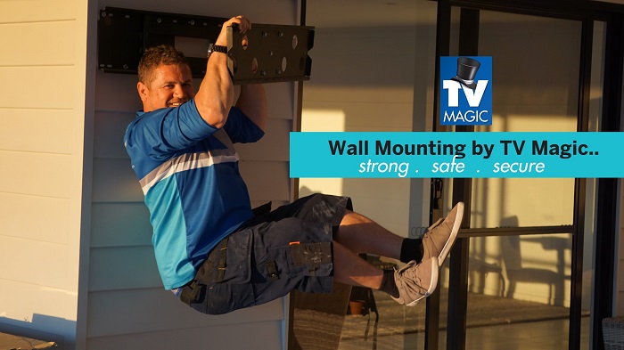 There is no need to fear gravity or your precious wall mounted TV when TV Magic do it. Here Adam, from TV Magic Sunshine Coast is demonstrating the strength of our TV brackets and installation. At TV Magic we are wall mounting hundreds of TVs on a weekly basis. The sad truth is we are coming across dozens of TVs that have already or are ABOUT TO fall off the wall. We are proud to boast that not one single TV we have installed has given way to gravity. Why would a TV fall off you may be asking? Well, there are any number of reasons. If you've ever played with a stud finder, you'll know they're not that accurate and they can give false readings and screw something to the edge of a stud or a random bit of timber waste that carpenters have stuck inside the wall (that is not actually load bearing); If you are using the cheapest bracket from KMART or KOGAN you may also have problems with the bracket failing; if screw the screws too tight (or not tight enough) on the back of the TV that can also cause problems; the list goes on and on.... Just know that we are fixing jobs that a hazardous on a weekly basis, even jobs carried out by individuals such as handymen, builders and electricains (people that you would think would be safe to assume they were able to do it properly). Well no, that's not always the case. Whilst most of the "Wall Mount Fails" we come are across are D.I.Y, runner's up are jobs carried out by some of our competition! So be careful! Scroll down through this link to check out a gallery of some of our jobs here..